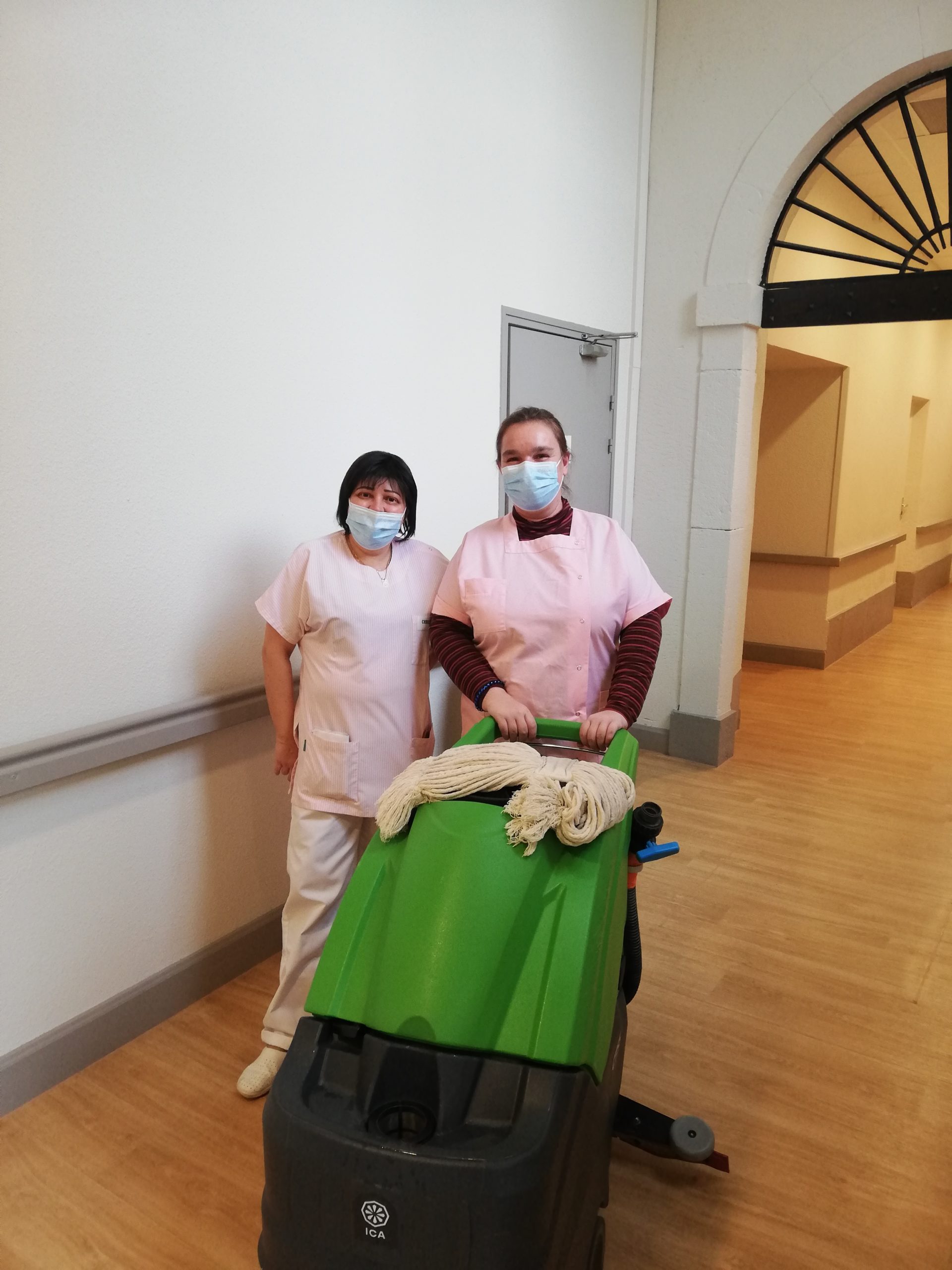 - « Duo ménage » : Caroline P. salarié de l’ESAT « Satrec » à La Ravoire, a accompagné Elysée G. et Christine D.A., agents de service ménage à Saint Benoit, afin d’entretenir les chambres et les locaux communs de l’EHPAD de 9h à 16h.