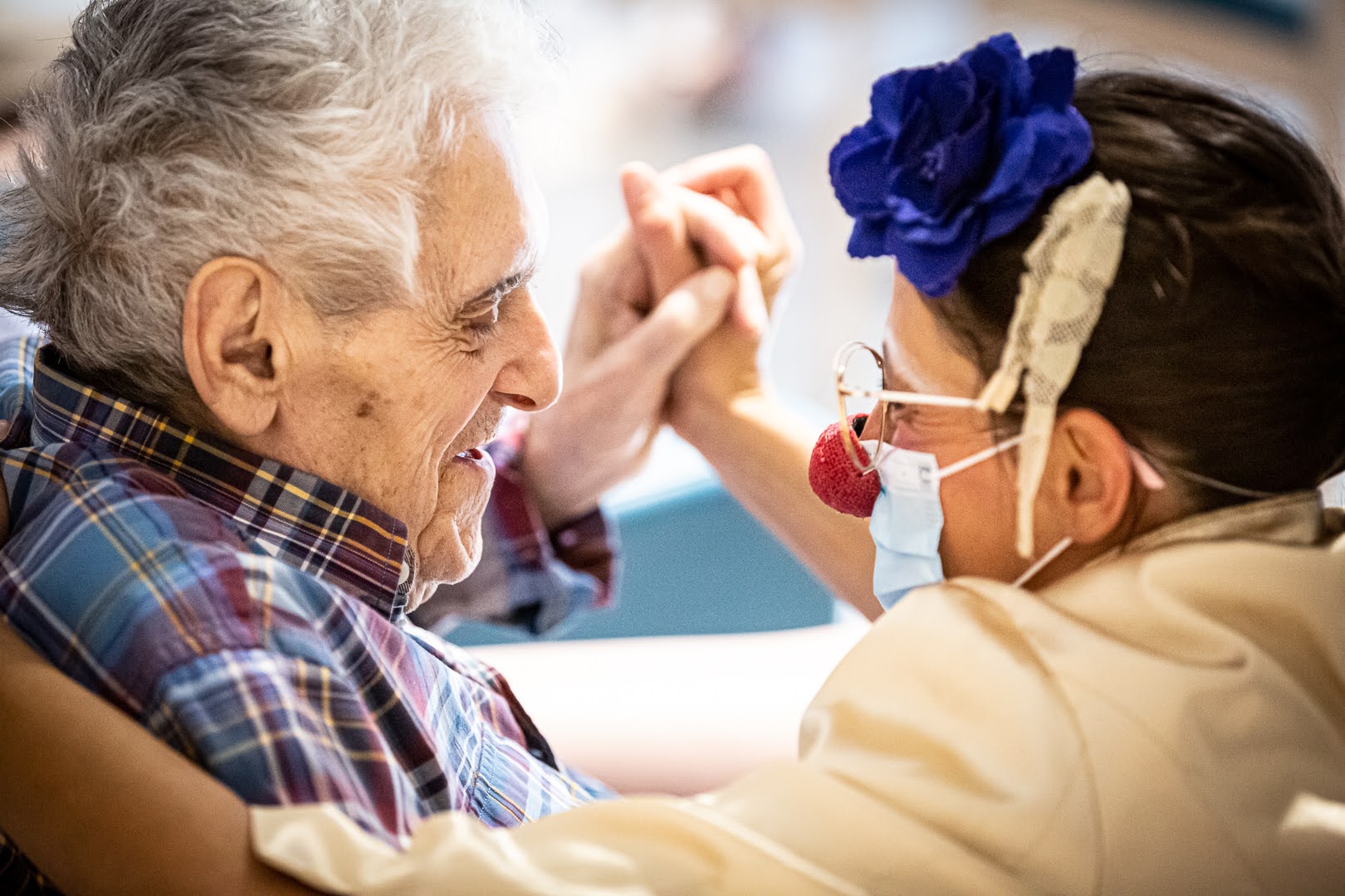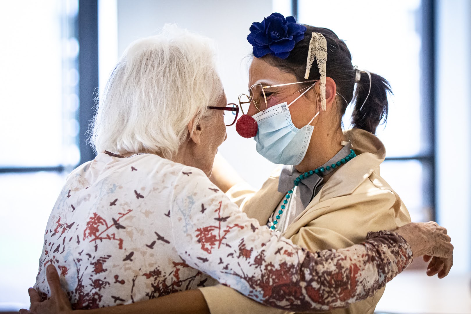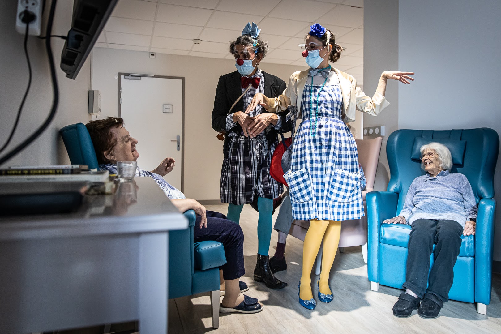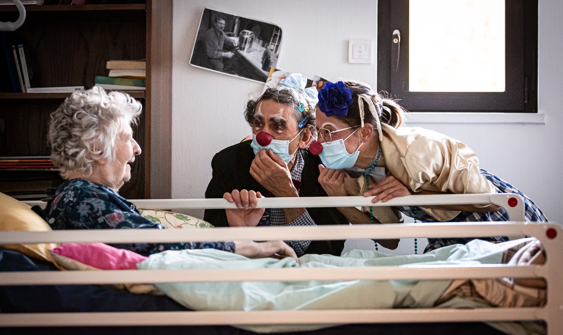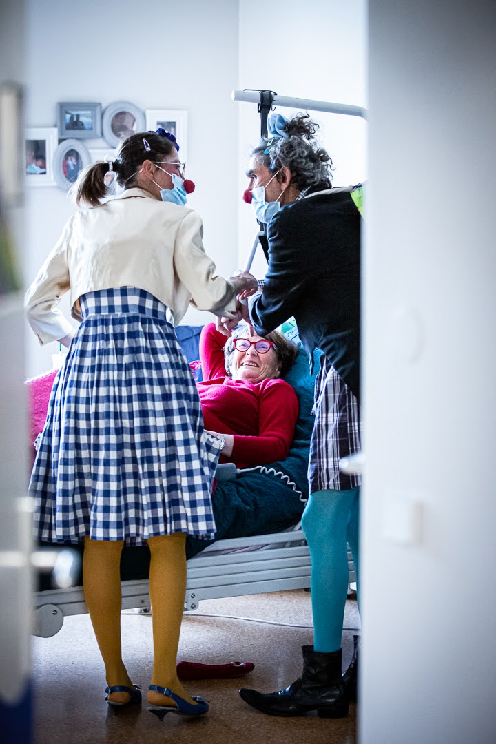 Les duos s’adaptent à la personne qu’ils ont en face et à son humeur, c’est un travail thérapeutique. Ils chantent, dansent, jonglent et font des acrobaties pour faire rire leurs publiques et mettent du baume au cœur.