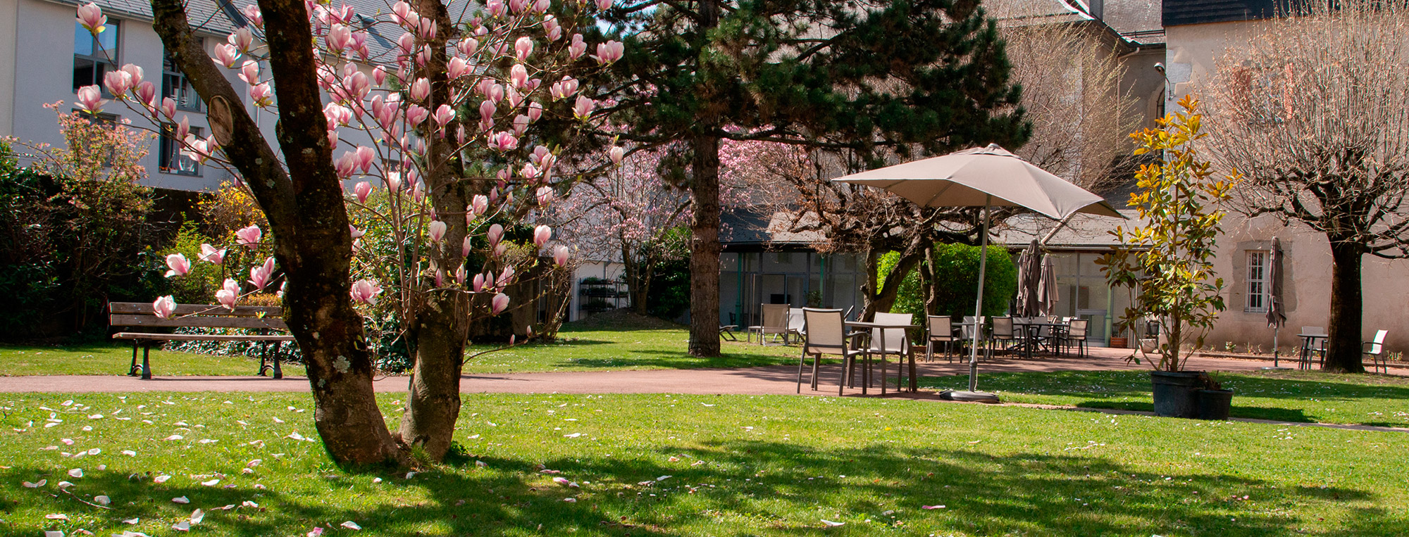 Notre parc et son emblématique magnolia sont un écrin de verdure dans lequel il est bon de s’installer pour lire, faire la sieste ou partager un moment avec ses proches à la belle saison. Bien aménagé, ombragé et protégé du vent, il offre en outre une jolie vue sur les vieilles pierres de l’ancien couvent. Un véritable atout pour notre maison de retraite !
