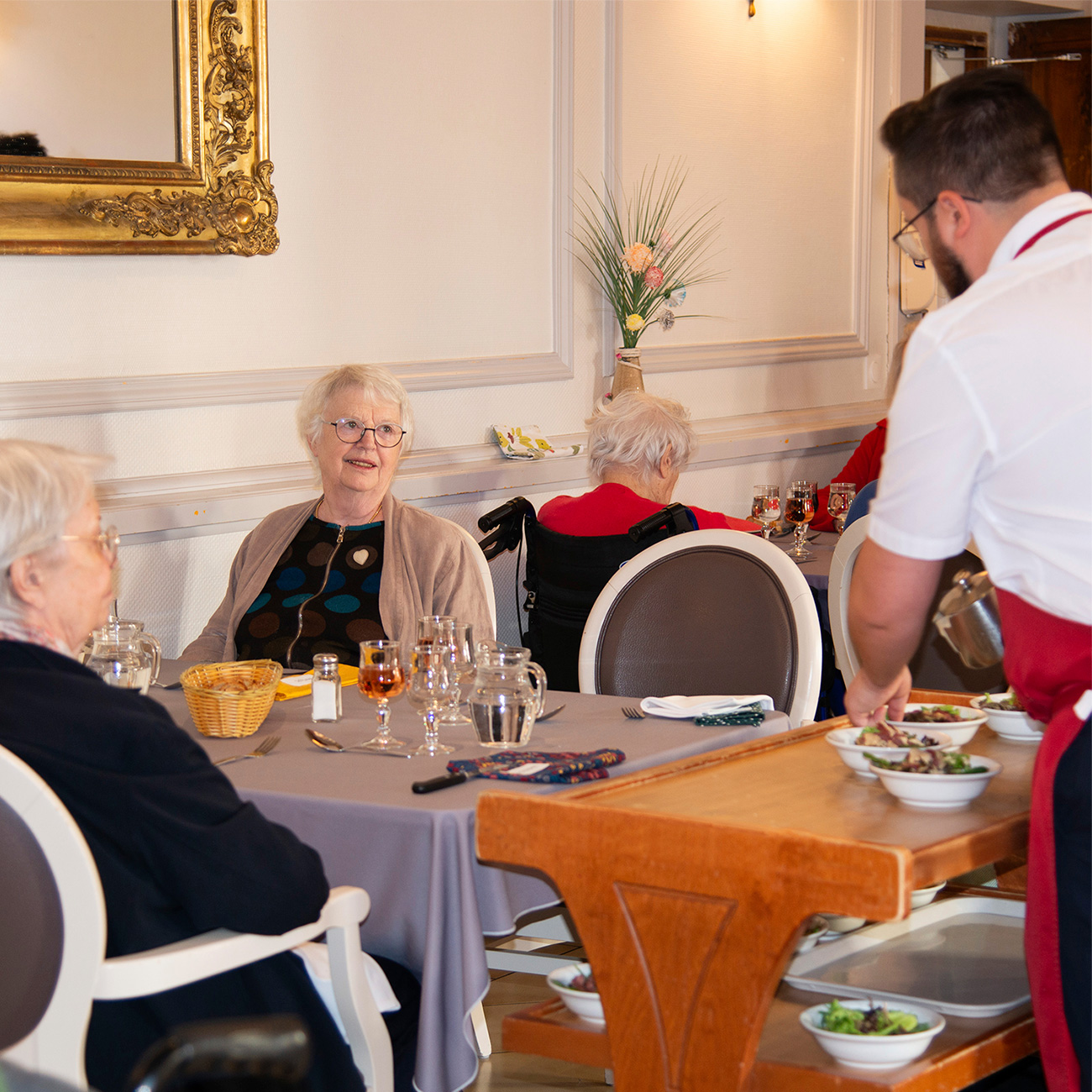 Nous mettons tout en œuvre pour que chaque jour à Saint-Benoît apporte son lot d’animations, de nouveautés et d’échanges. Dans nos jolies salles à manger, les résidents se retrouvent pour échanger autour d’un bon repas, comme à la maison. Une salle à manger spécifique leur permet de recevoir leurs proches en toute convivialité.